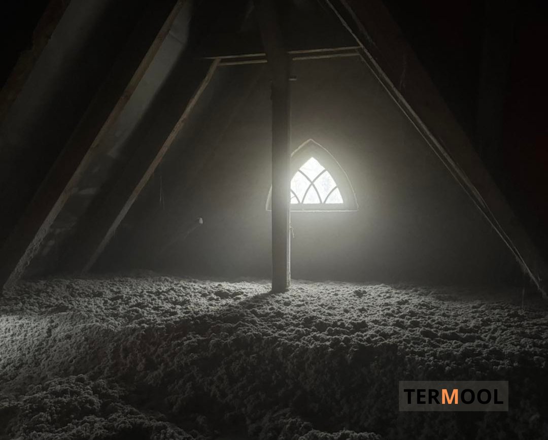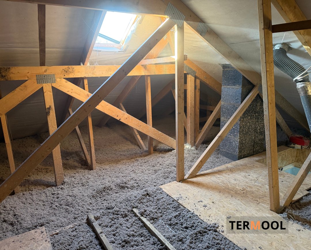 🏡 ok. 100m2 skosów i całkowicie pustych ścianek kolankowych zadmuchaliśmy szczelnie granulatem Ce…